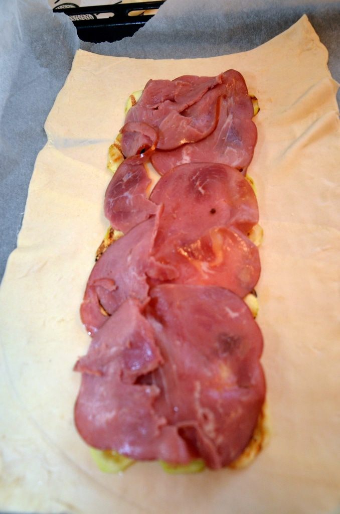 Сверху ветчину. Если остались кабачки, можно сделать сверху еще один слой.