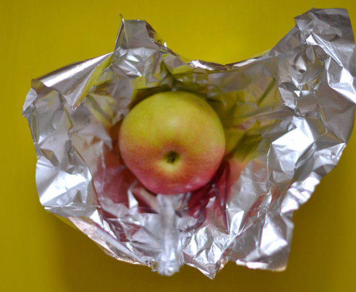 Чтобы приготовить паутинку, понадобятся яблоки и фольга.