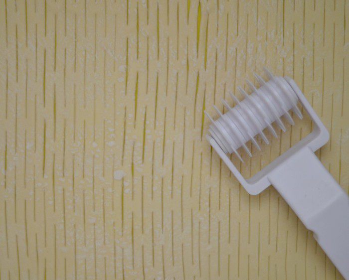 Слоеное тесто раскатать, с помощью специального ролика нарезать сеточу.