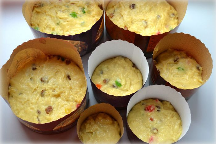 Разложить тесто в формы, дать расстояться примерно 30-40 мин. Оно должно подняться, увеличиться вдвое.