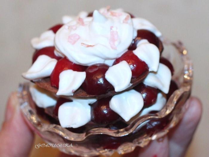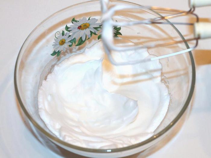 Во взбитый белок, не выключая миксер, тонкой струйкой вливаем сахарный сироп и продолжаем взбивать до полного остывания крема. Получается густой, устойчивый крем. Для приготовления крема лучше, если кто-то будет вам помогать. Ну, а если нет помощников, то пока вы варите карамель, держите взбитый белок в холодильнике, но не долго.