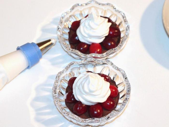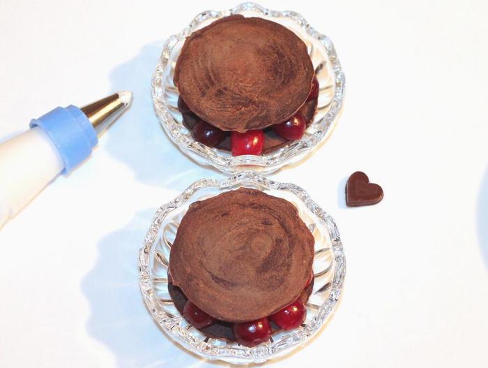 Выложите крем в корнетик. Насадка круглая или звездочка.