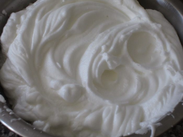 Взбить белки со щепоткой соли до устойчивых пиков.