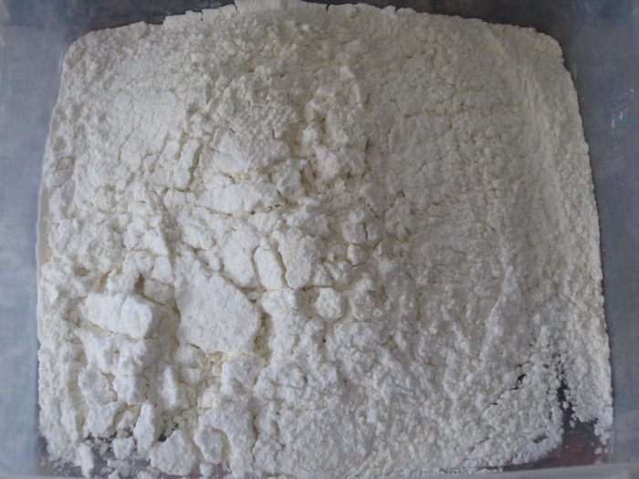 Не выключая миксер, попеременно с помощью столовой ложки ввести взбитые белки и муку с крахмалом.