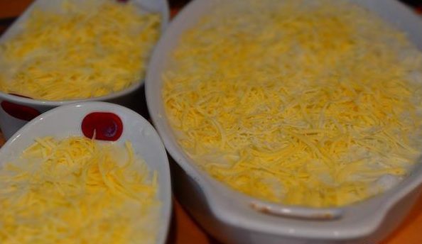 Массу разложить по формам, посыпать оставшимся сыром и запечь при Т 180С 20-30 минут. Подавать в теплом виде!