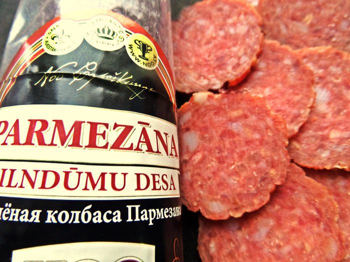 В это время нарежем тонко колбаску, у меня "пармезановая", очень вкусная и именно с гречкой хорошо сочетается.