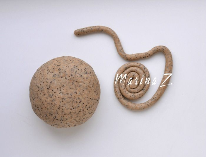 Отщипываем от теста небольшие кусочки и раскатываем жгуты толщиной примерно 0,5 см.