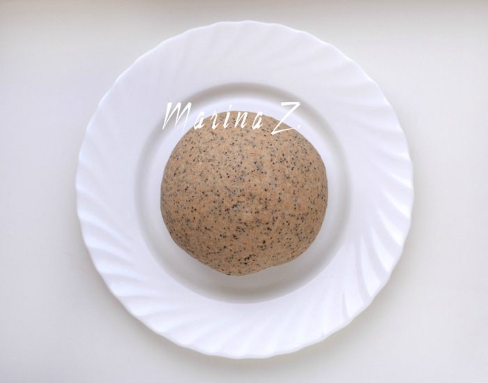 Замесить крутое тесто. Завернуть его в пищевую пленку и дать отдохнуть 20-30 мин. Тесто эластичное и не липкое.