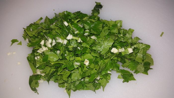 Петрушку и чеснок мелко рубим и смешиваем между собой.