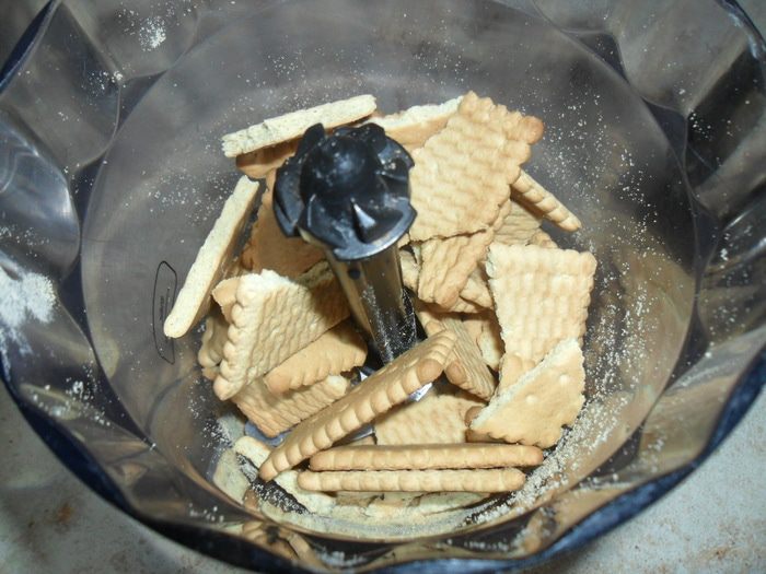 Печенье измельчить в блендере.