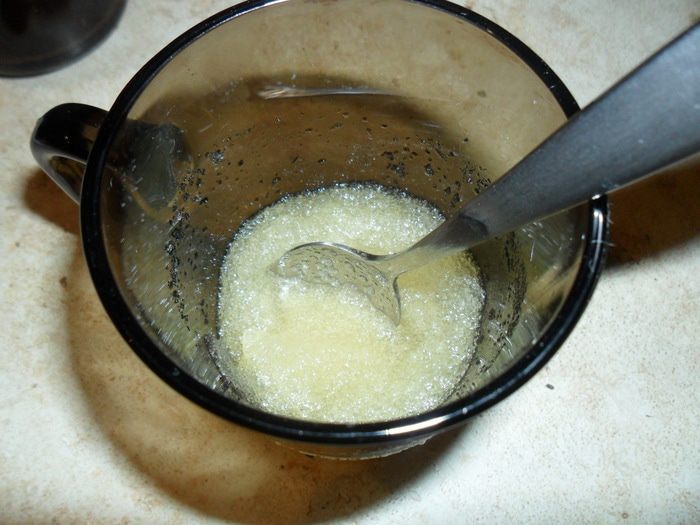 Желатин залить водой, дать набухнуть и на водяной бане подогреть до растворения.