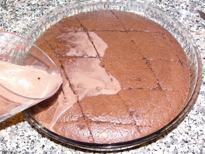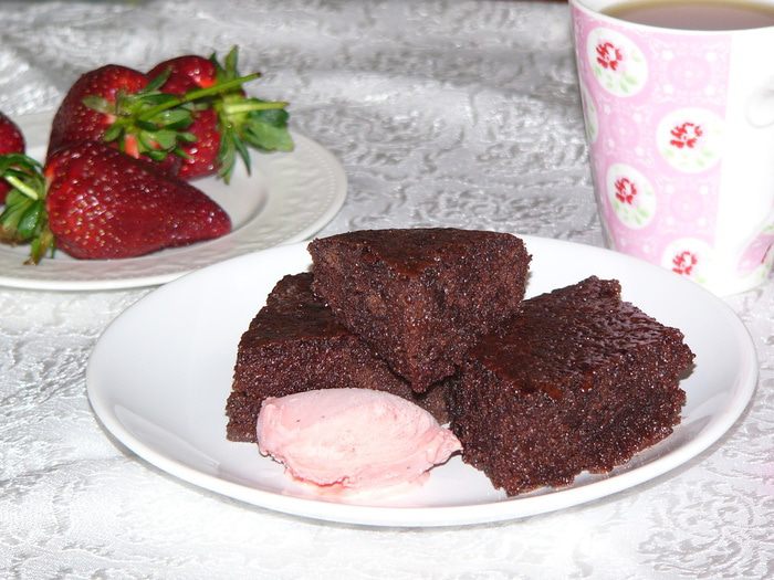 Выпекаем в разогретой духовке 25 минут. Горячий кекс нарезаем на порционные куски и заливаем пропиткой.