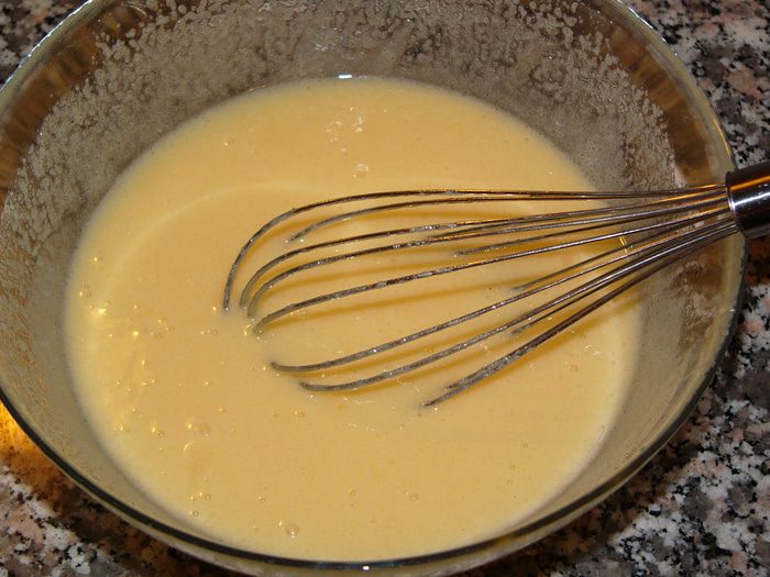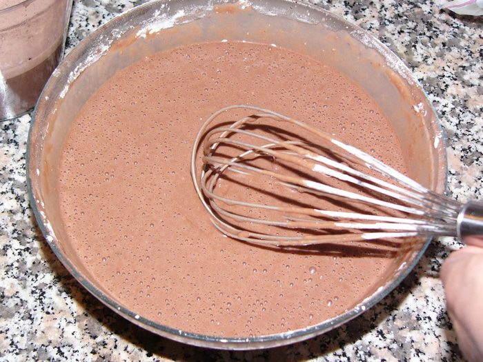 Смазываем форму маслом и выливаем тесто в форму. У моей диаметр 30 см. Если вы очень уважаете свою духовку, будьте готовы, что кекс при выпечке может увеличиться втрое. В моей, скромной, "растет" примерно в 2 раза.