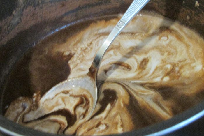 Вылить полученную массу в ковшик к остальному напитку.