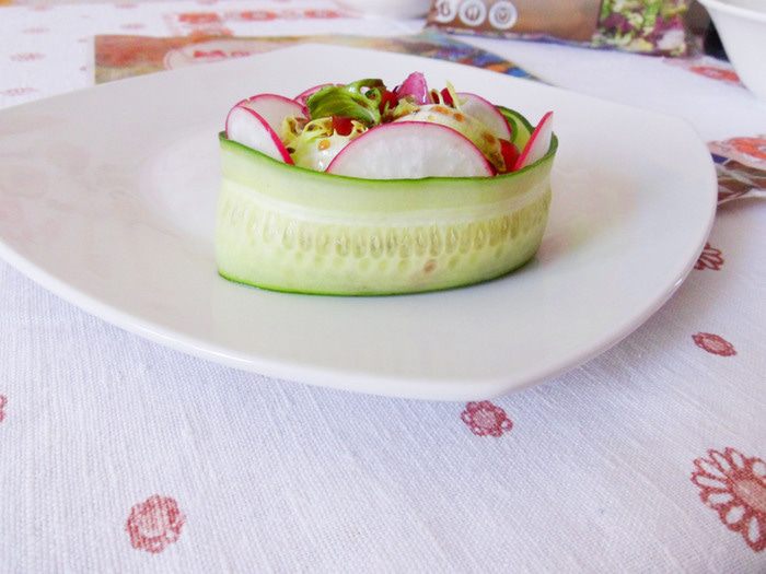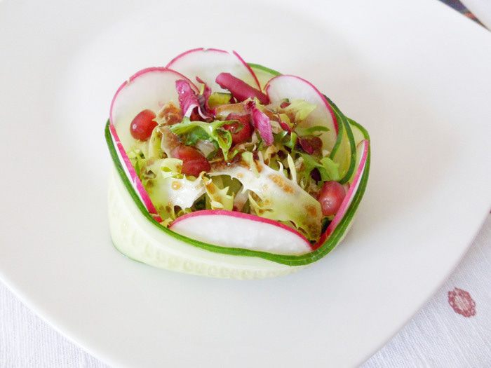 Полоски огурца хорошо держат корзиночку.