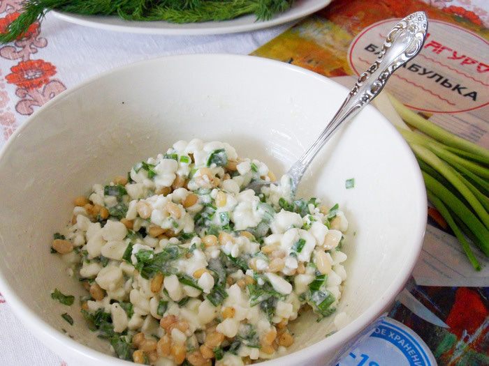 Все тщательно перемешать. Посолить, поперчить по вкусу.