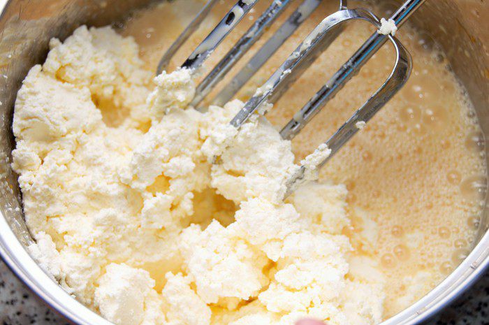Добавить к основной массе творог. Я ничего не протирала через сито. Взбить до однородности. Если где-то и останутся крупинки творога - ничего страшного.