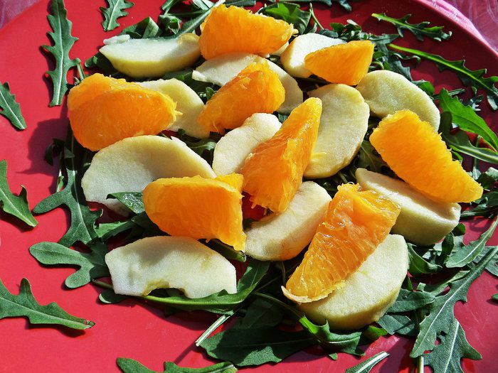 Подготовить фрукты. Яблоки очистить от кожицы, апельсиновые дольки от плёнок.