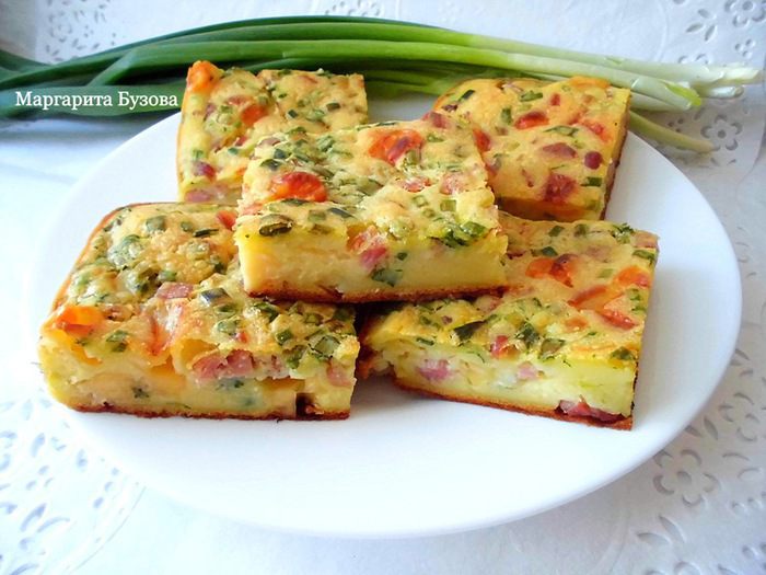 Друзья, сегодня я к Вам пожаловала с выпечкой, да-да, с самой настоящей ВЫПЕЧКОЙ! Хочу поделиться рецептом вкуснейшего пирога, который готовила уже раз 6 и только сейчас мне удалось его сфотографировать! Раньше делала его либо поздно вечером, либо очень спешила... Этот пирог не просто вкусный, он ВКУСНЕЙШИЙ! Изначально это был рецепт маффинов (просто пирог больше подходит для семейного варианта да и удобнее так, поэтому в последнее время готовлю именно пирог). Когда я приготовила их впервые, мы с семьей были от них в восторге! (тогда мы еще ели выпечку и все остальное) Получились вкуснейшие воздушные маффины с кусочками ароматной копченой грудинки, расплавленного сыра и запеченного лука...Просто блаженство! Помню, за один раз я тогда съела 2 штуки) С тех пор рецепт прижился в моей семье, и теперь я готовлю по нему время от времени на различные праздники. И именно про эти маффины знают многие мои родственники! Хочу обратить внимание, что рецепт очень простой и быстрый в приготовлении! Раньше я готовила этот пирог с копченой свиной грудинкой, в этот раз - с куриной. Сюда можно положить вареную грудинку, ветчину, бекон или даже колбасу! Зелень тоже может быть любой. Можно положить обычный репчатый лук, а для цвета добавить, например, укроп или петрушку. В любом случае будет очень вкусно! Угощайтесь!