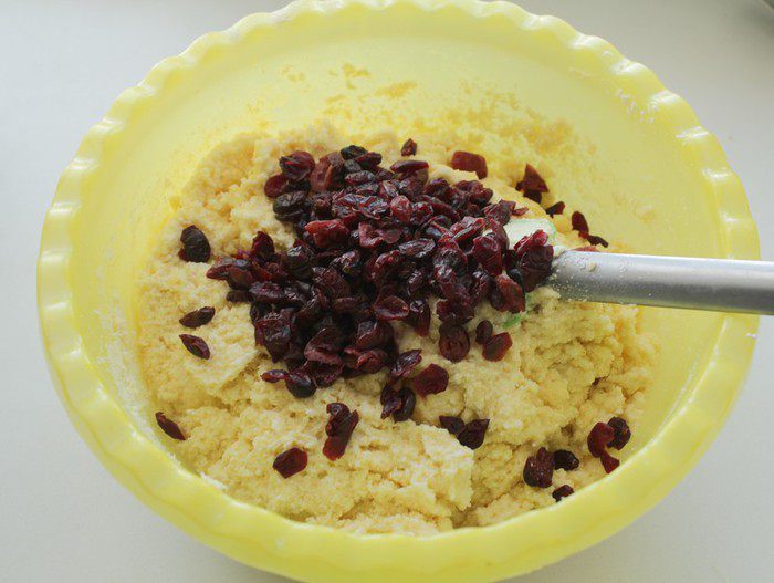 Добавить клюкву и еще раз перемешать.