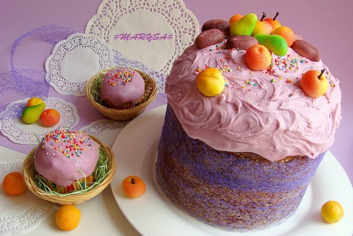 После того, как куличи вынуты из духовки, им нужно дать немного постоять, накрыв полотенцем, потом вынуть из формы.