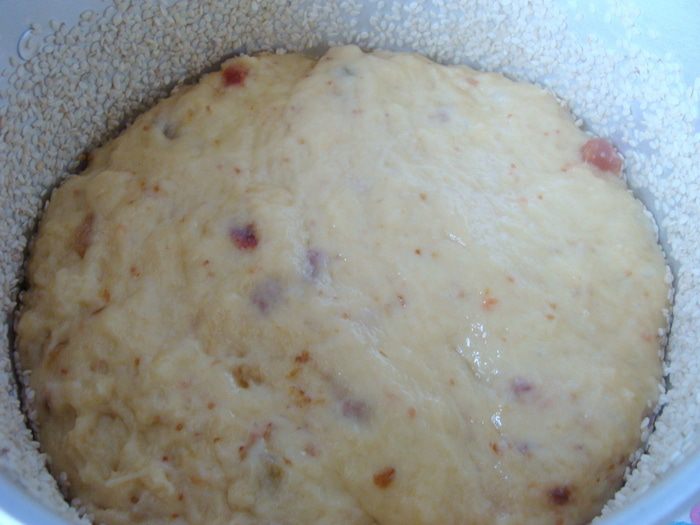 Когда тесто поднимется на 3/4 формы, включить огонь. Сначала побольше, примерно 180*С, как только куличи поднимутся до конца, убавить огонь до 160*С.