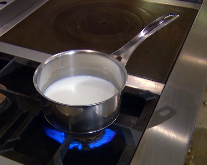 Молоко слегка подогреть на медленном огне.