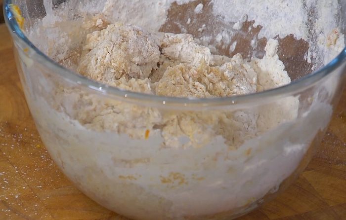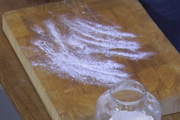 Рабочую поверхность присыпать оставшейся мукой.