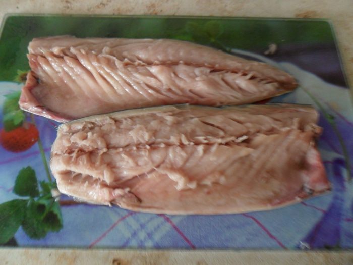 Скумбрию почистить и разделать на филе.