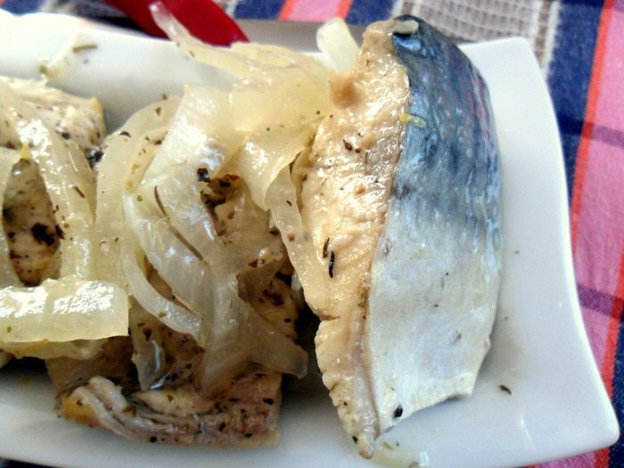 Хочу с Вами поделится рецептом маринованной скумбрии с луком. Рыбка готовится быстро, а получается пикантной и вкусно.