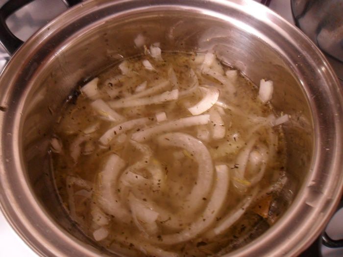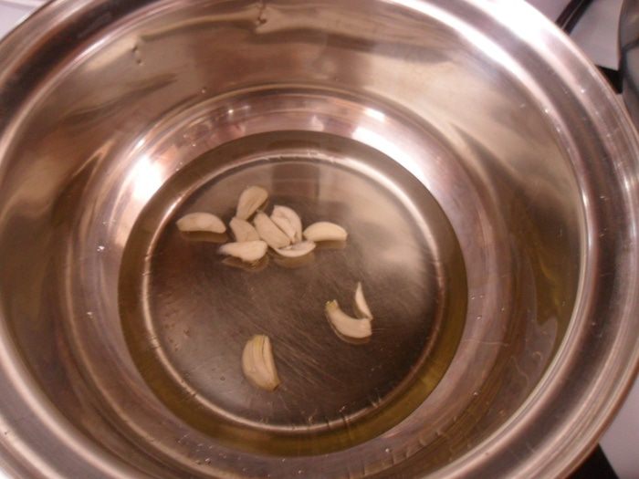 В кастрюле разогреть оливковое масло и пару минут прогреть на нем чеснок.
