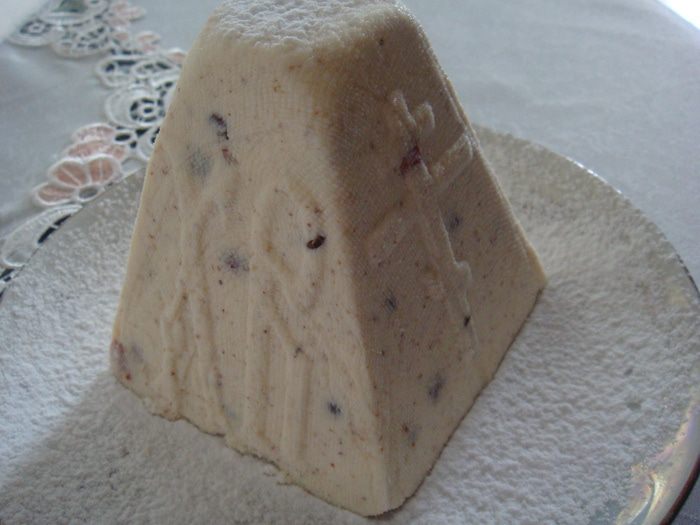 При подаче переложить готовую пасху на блюдо посыпать сахарной пудрой (можно украсить вишнями). Приятного аппетита!