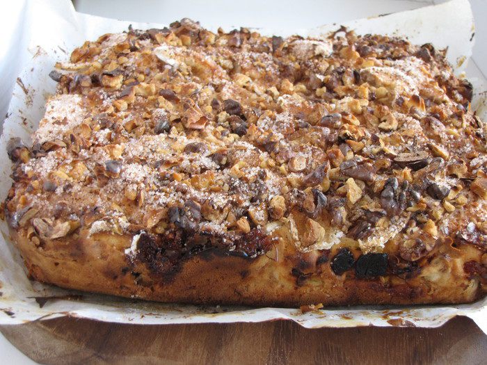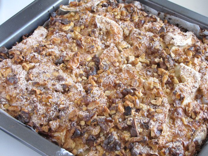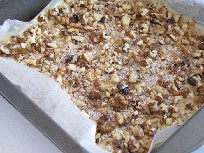 Равномерно посыпать половиной ореховой смеси с корицей и сахаром.