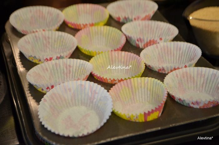 Разогреть духовку до 160 гр. Выложить по ячейкам формочек бумажные формочки для маффинов.