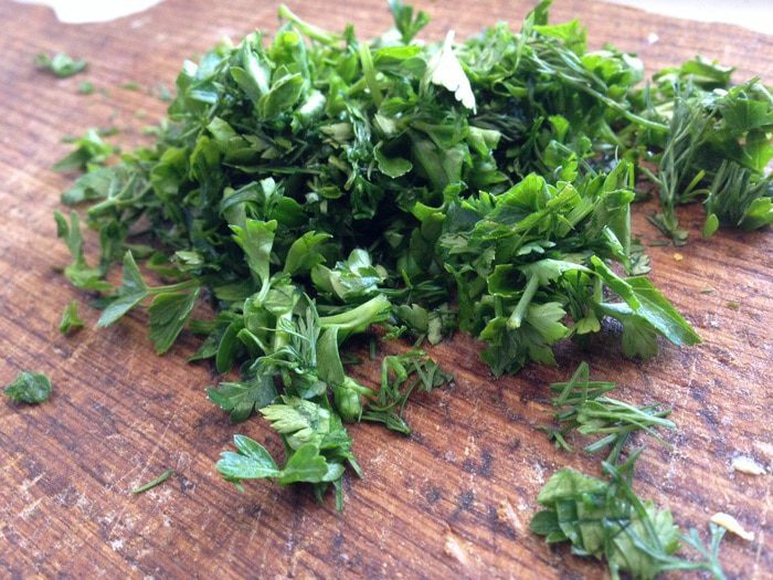 Зелень вымыть, обсушить и измельчить. По желанию можете добавить зеленый лук.