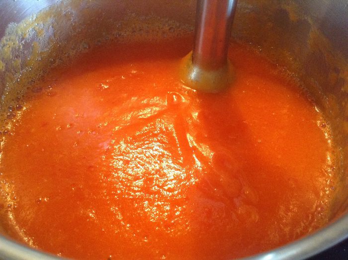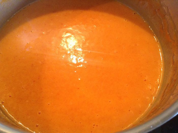 Налить в кастрюлю 200г. воды и поставить на огонь. Добавить соль. Варить до мягкости овощей (у меня 10 минут).