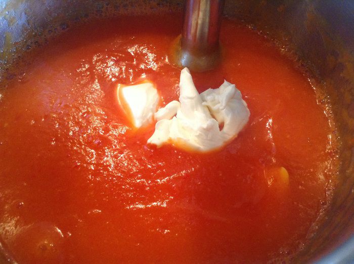 Переложить суп в тарелки, сверху выложить макароны и украсить семечками.