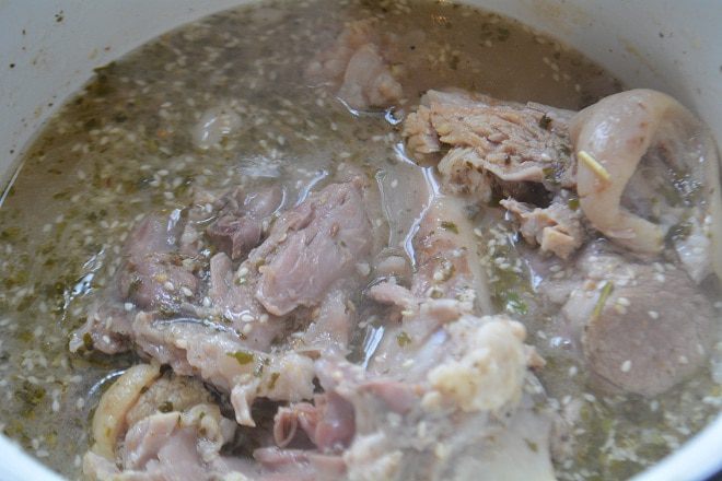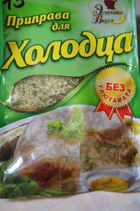 За 30 минут до конца варки я добавляю приправу, соль и лавровый лист. Состав приправы: семена укропа, кунжута, чеснок гранулированный, перец душистый, корица, петрушка. С этой приправой холодец становится каким-то особенным и очень вкусным :)