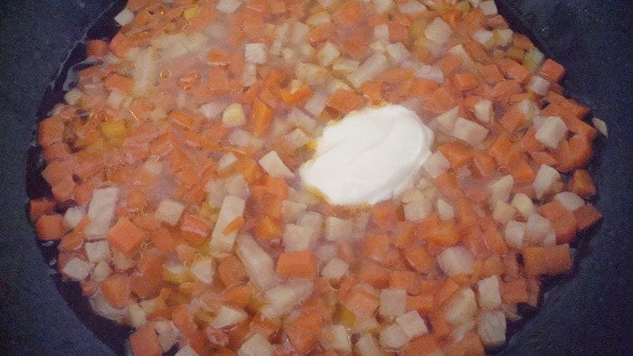 Влить воду и потушить 20-25 минут.