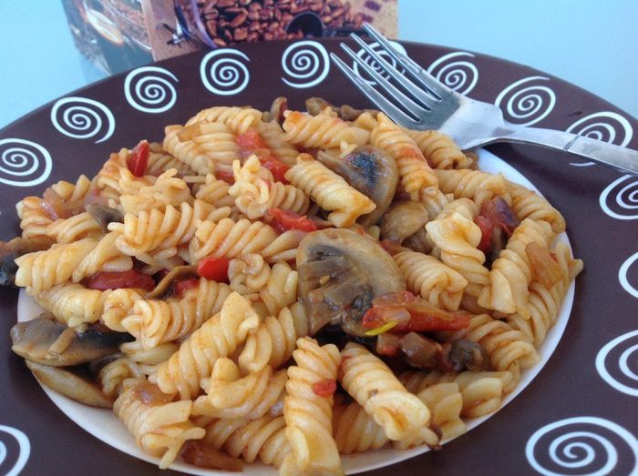 У болгарского перца удалите семена и мелко порежьте. Чеснок очистите и выдавите прессом. Добавьте на сковороду, накройте крышкой и пусть потомится 2-4 минуты.