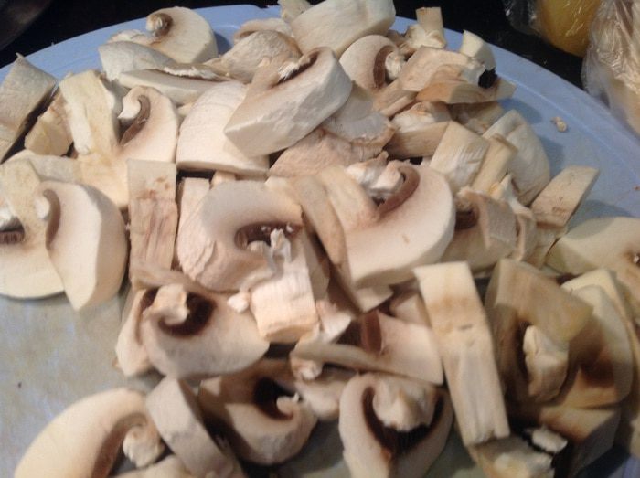 Тонко нарежьте грибы, добавьте к луку и жарьте еще около 10 минут.
