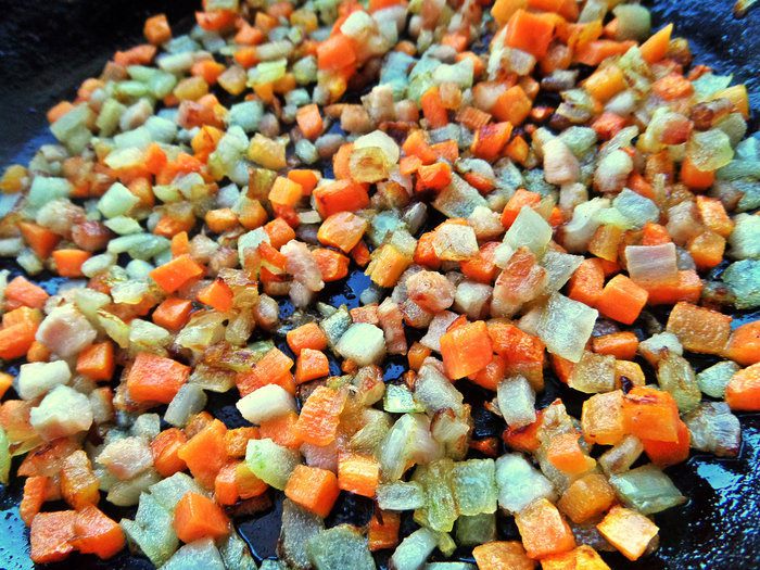 Обжарить на растительном масле и отправить в суп. Добавить овощные приправы.