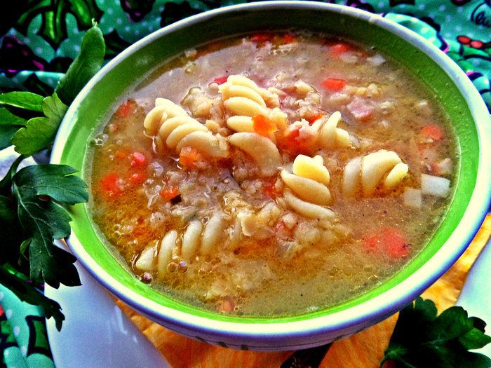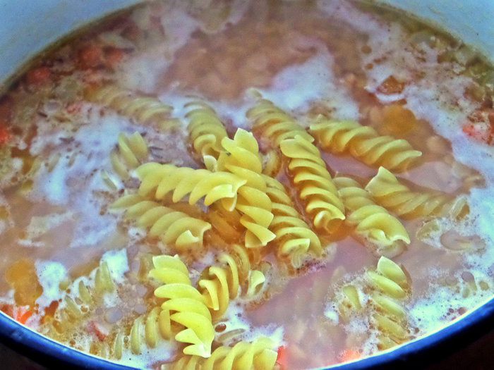 Когда суп немного сварится, добавить для густоты любую пасту.