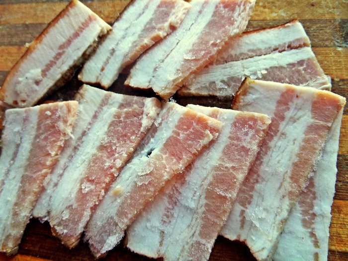 Или более сытный вариант - нарезать кубиками прослойку и жарить на вытопившемся жире корнеплоды.