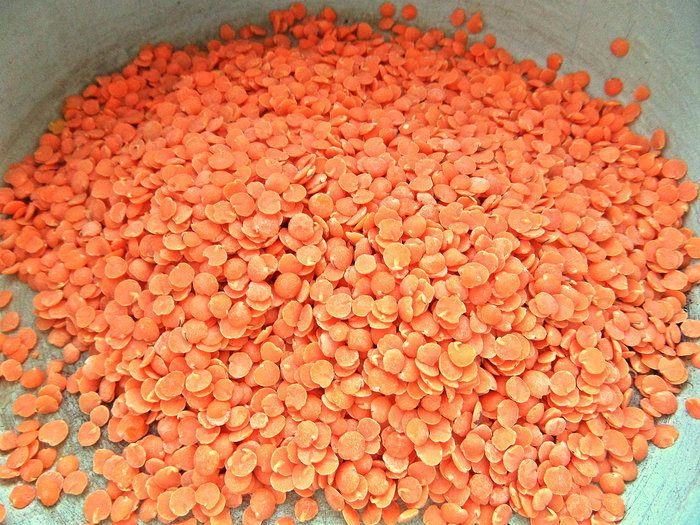 Чечевицу промыть проточной водой. Залить водой с солью и тмином и поставить на средний огонь.