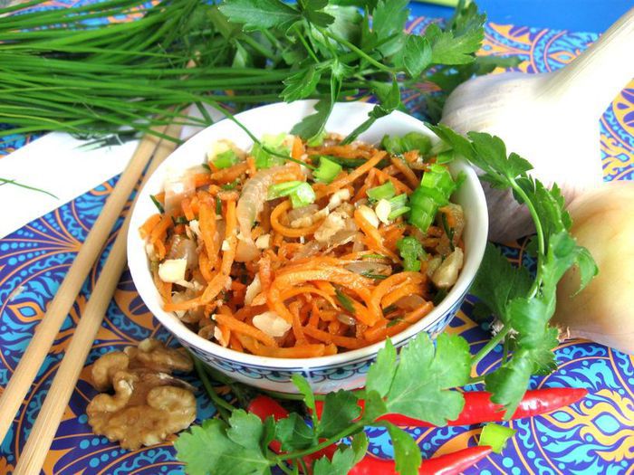 Салат из морковки по-корейски, орехов и зелени