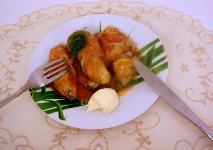 При подаче полить голубцы соусом, в котором они тушились. Для не постящихся можно добавить сметану. Приятного аппетита!
