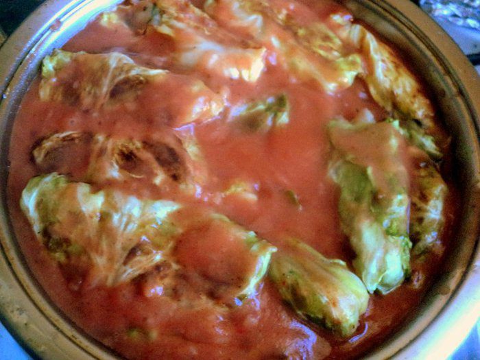 Залить голубцы соусом и потушить под крышкой 30 минут. У меня капуста было молодая, поэтому тушила 20 минут.