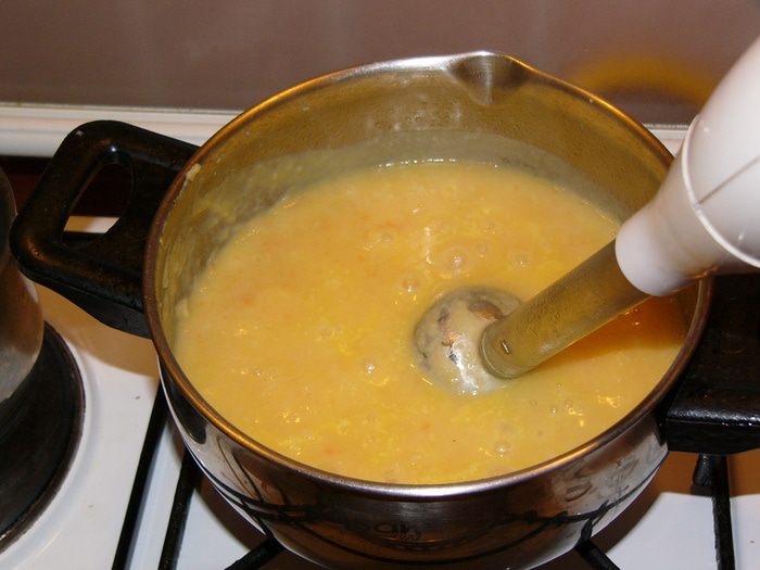 Готовые овощи пюрировать блендером.
