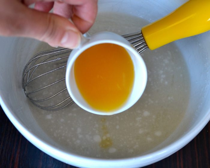 В миску вылить кокосовое молоко, добавить сахар, ванилин и растительное масло. Размешать.